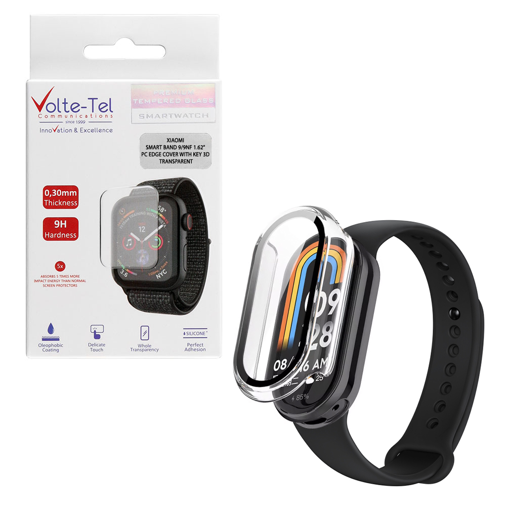 VOLTE-TEL TEMPERED GLASS XIAOMI SMART BAND 9 / SMART BAND 9NF 1.62" 9H 0.30mm PC EDGE COVER WITH KEY 3D FULL GLUE FULL COVER TRANSPARENT