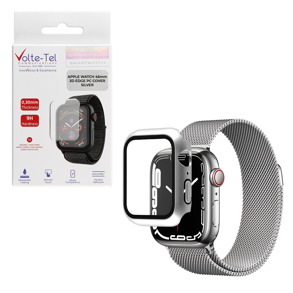 TEMPERED GLASS APPLE WATCH 45mm 1.78" 9H 0.30mm PC EDGE COVER WITH KEY 3D FULL GLUE FULL COVER SILVER
