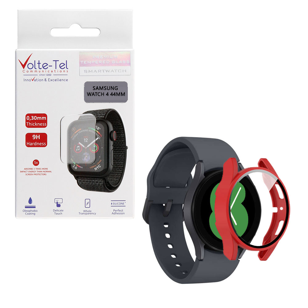 TEMPERED GLASS SAMSUNG WATCH 4 44mm 1.4" 9H 0.30mm PC EDGE COVER WITH KEY 3D FULL GLUE FULL COVER RED