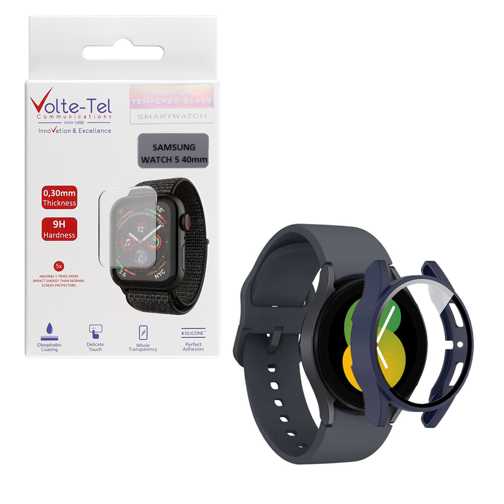 TEMPERED GLASS SAMSUNG WATCH 5 40mm 1.2" 9H 0.30mm PC EDGE COVER WITH KEY 3D FULL GLUE FULL COVER BLUE