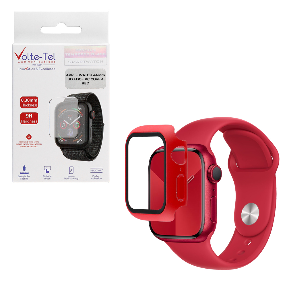 TEMPERED GLASS APPLE WATCH 44mm 1.78" 9H 0.30mm PC EDGE COVER WITH KEY 3D FULL GLUE FULL COVER RED