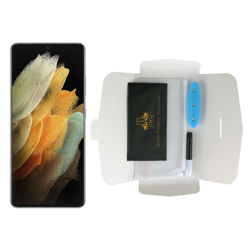 TEMPERED UV GLASS SAMSUNG S21 ULTRA 5G G998 6.8"9H 0.20mm 10D SEMI WITH GLUE-TOOL FINGER UNLOCK FULL COVER TRANSPARENT