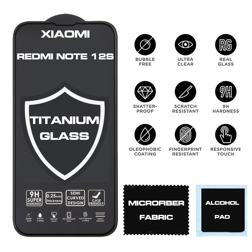 TITANIUM TEMPERED GLASS XIAOMI REDMI NOTE 12S 6.43" 9H 0.25mm FULL FACE FULL GLUE SEMI CURVED BLACK