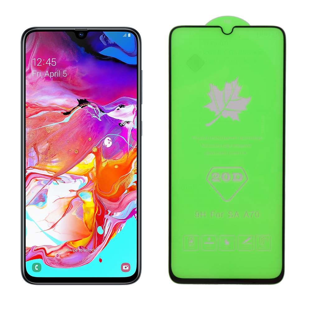 TEMPERED GLASS SAMSUNG A70 2019 A705 6.7" 9H 0.25mm 20D FULL GLUE SEMI CURVED BLACK