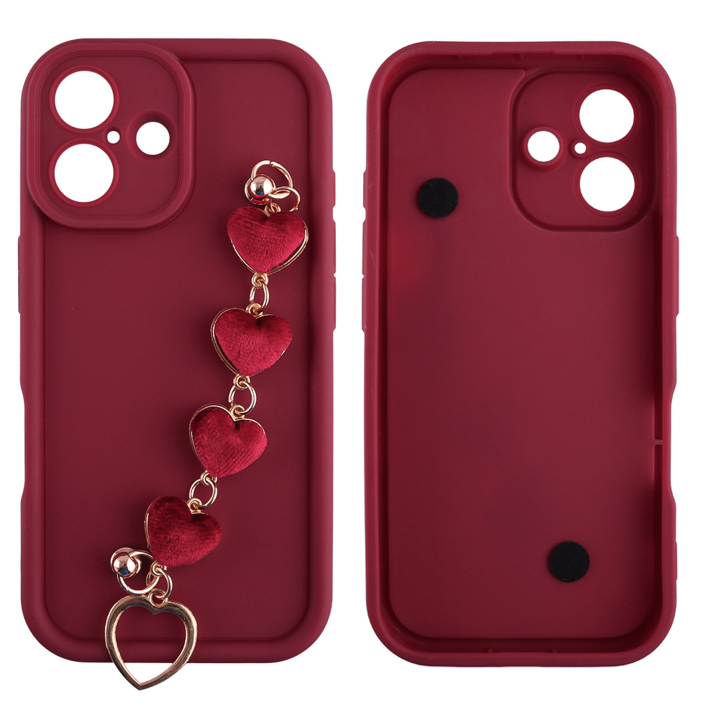VOLTE-TEL ΘΗΚΗ IPHONE 17 6.3" SILICON TPU WITH STRAP FULL CAMERA PROTECTION BURGUNDY WITH RED HEARTS