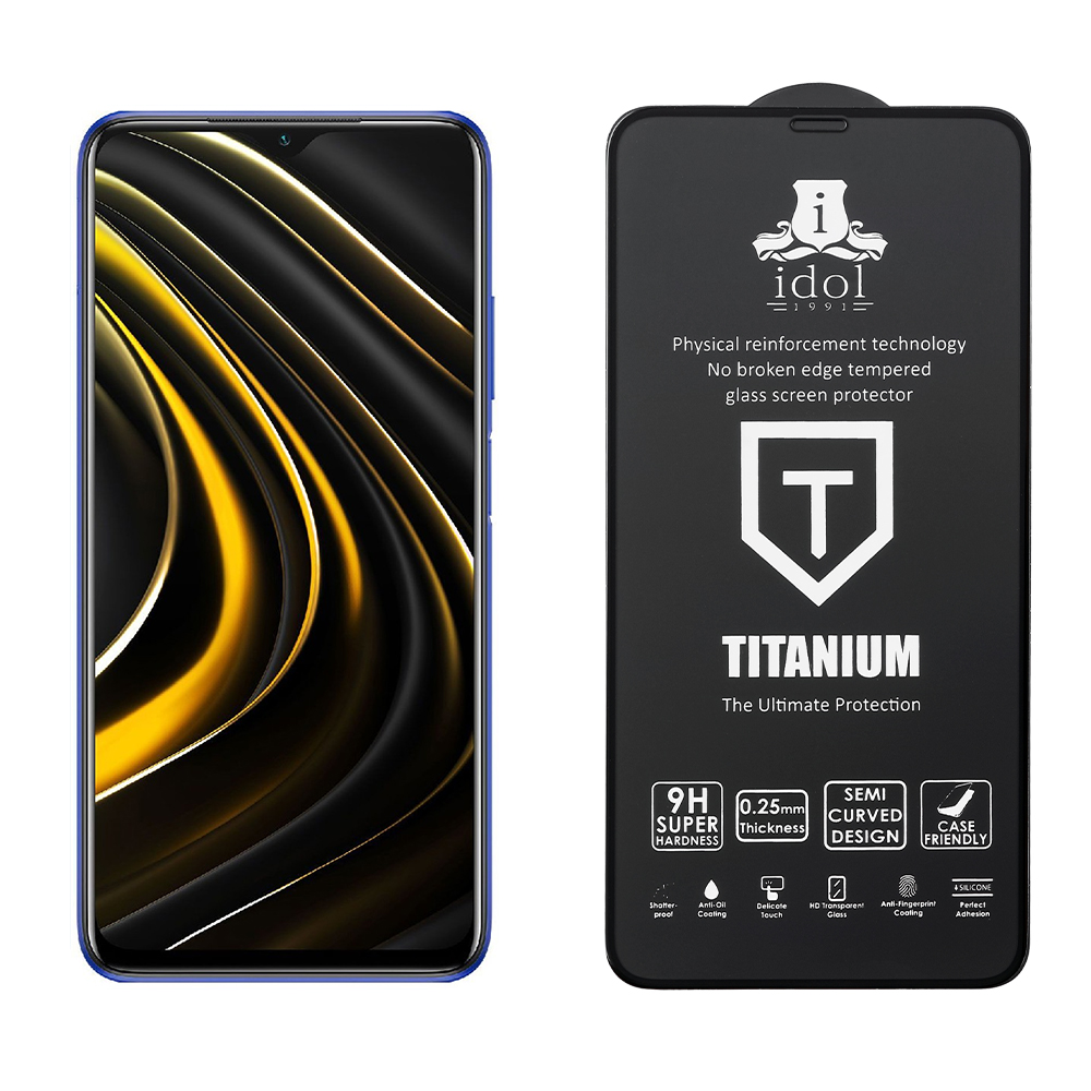 TEMPERED GLASS XIAOMI POCO M3 / REDMI 9T 6.53" 9H 0.25mm TITANIUM SEMI CURVED FULL GLUE BLACK
