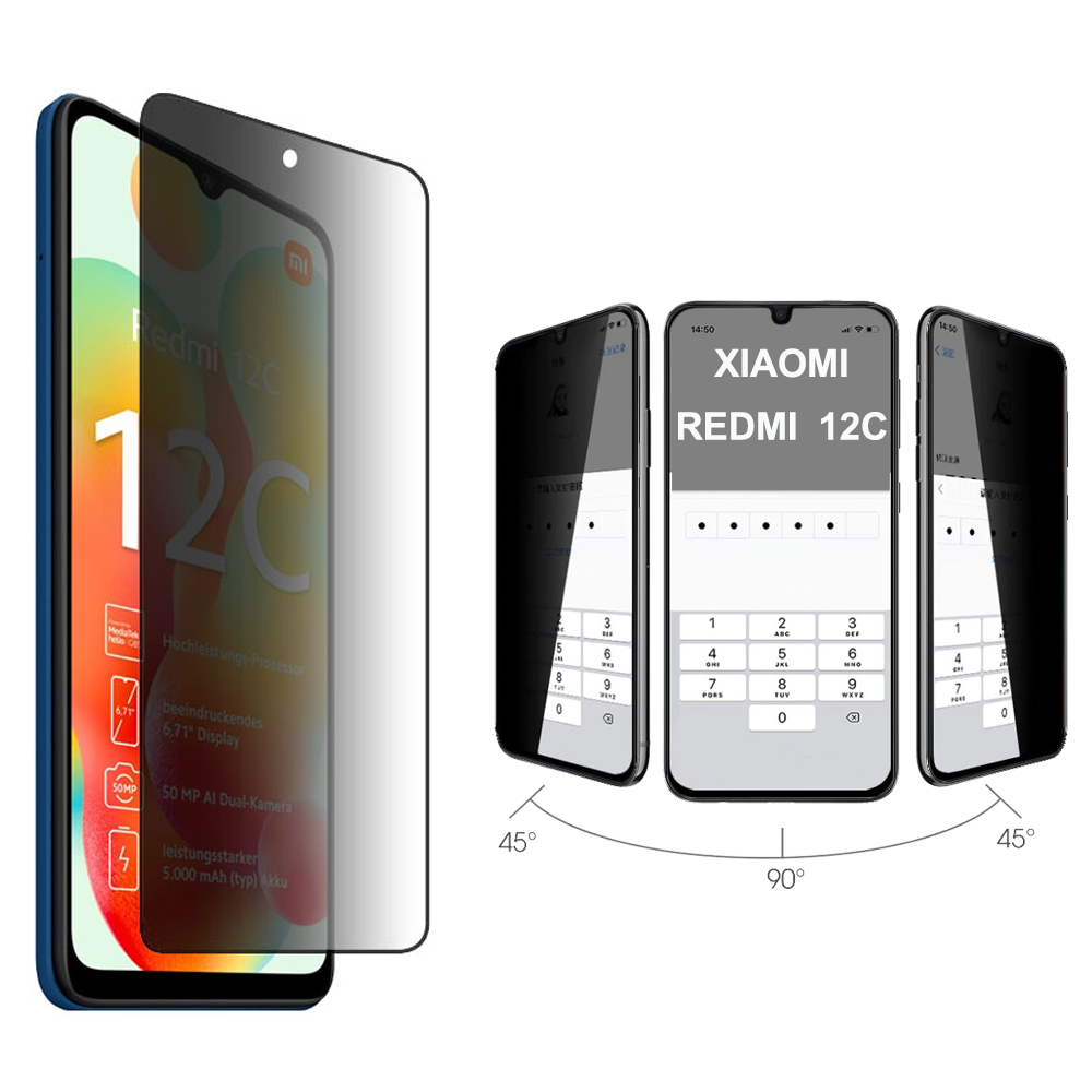 PREMIUM TEMPERED GLASS XIAOMI REDMI 12C 6.71" 9H 0.30mm FULL FACE FULL GLUE PRIVACY ANTISPY GLASS BLACK
