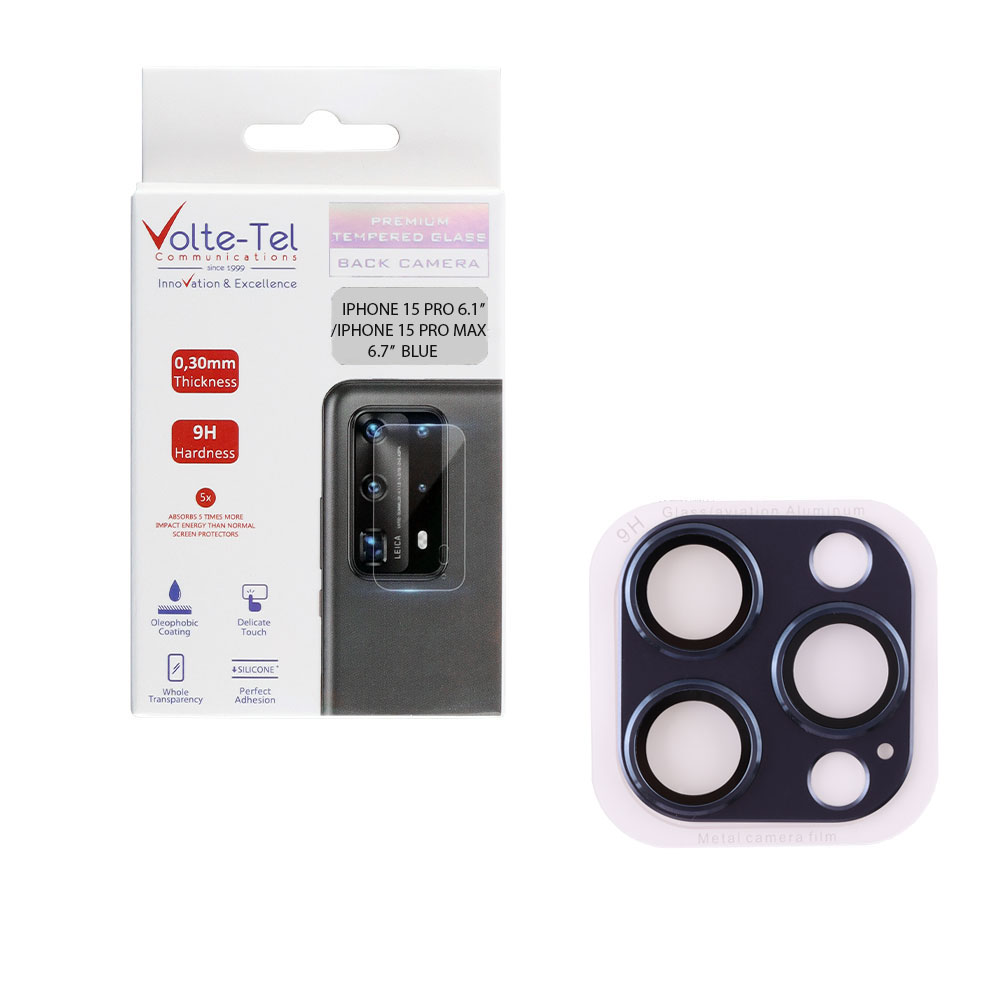 CAMERA GLASS COVER IPHONE 15 PRO 6.1" / IPHONE 15 PRO MAX 6.7" 9H 0.30MM 3D AR ALUMINIUM-ELECTROPLATING FRAME BLUE