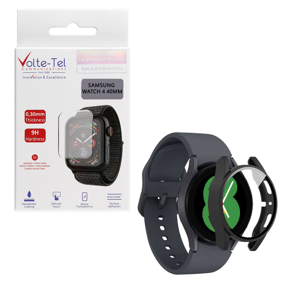 TEMPERED GLASS SAMSUNG WATCH 4 40mm 1.2" 9H 0.30mm PC EDGE COVER WITH KEY 3D FULL GLUE FULL COVER BLACK