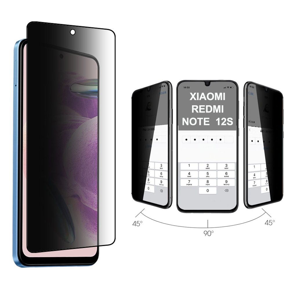 PREMIUM TEMPERED GLASS XIAOMI REDMI NOTE 12S 6.43" 9H 0.30mm FULL FACE FULL GLUE PRIVACY ANTISPY GLASS BLACK