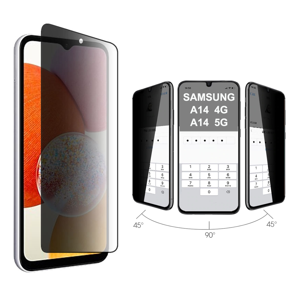 PREMIUM TEMPERED GLASS SAMSUNG A14 4G A145 / A14 5G A146 6.6" 9H 0.30mm FULL FACE FULL GLUE PRIVACY ANTISPY GLASS BLACK