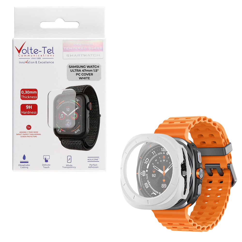 TEMPERED GLASS SAMSUNG WATCH ULTRA 47mm 1.5" 9H 0.30mm PC EDGE COVER WITH KEY 3D FULL GLUE FULL COVER WHITE
