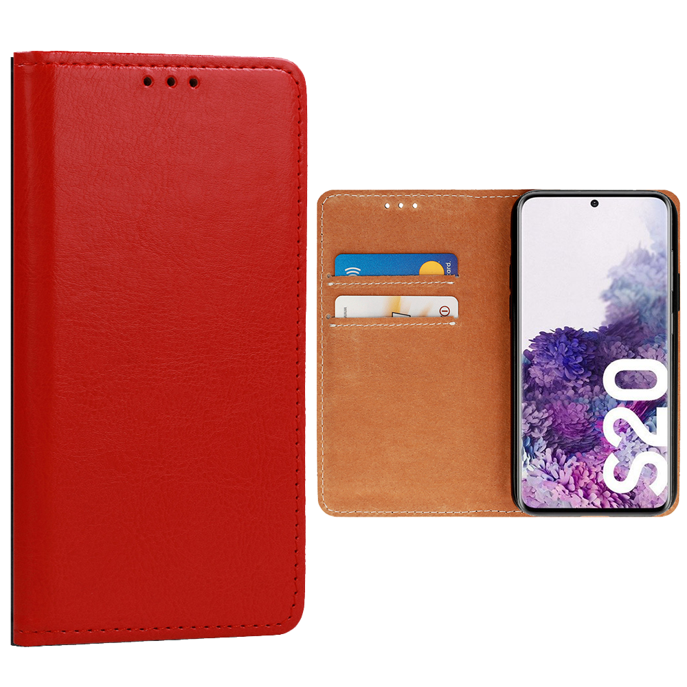 ΘΗΚΗ SAMSUNG S20 G980 6.2" ITALIAN LEATHER MAGNET BOOK STAND RED