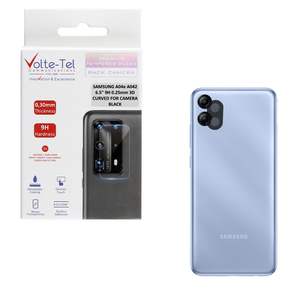 TEMPERED GLASS SAMSUNG A04e A042 6.5" 9H 0.25mm 3D CURVED FOR CAMERA BLACK