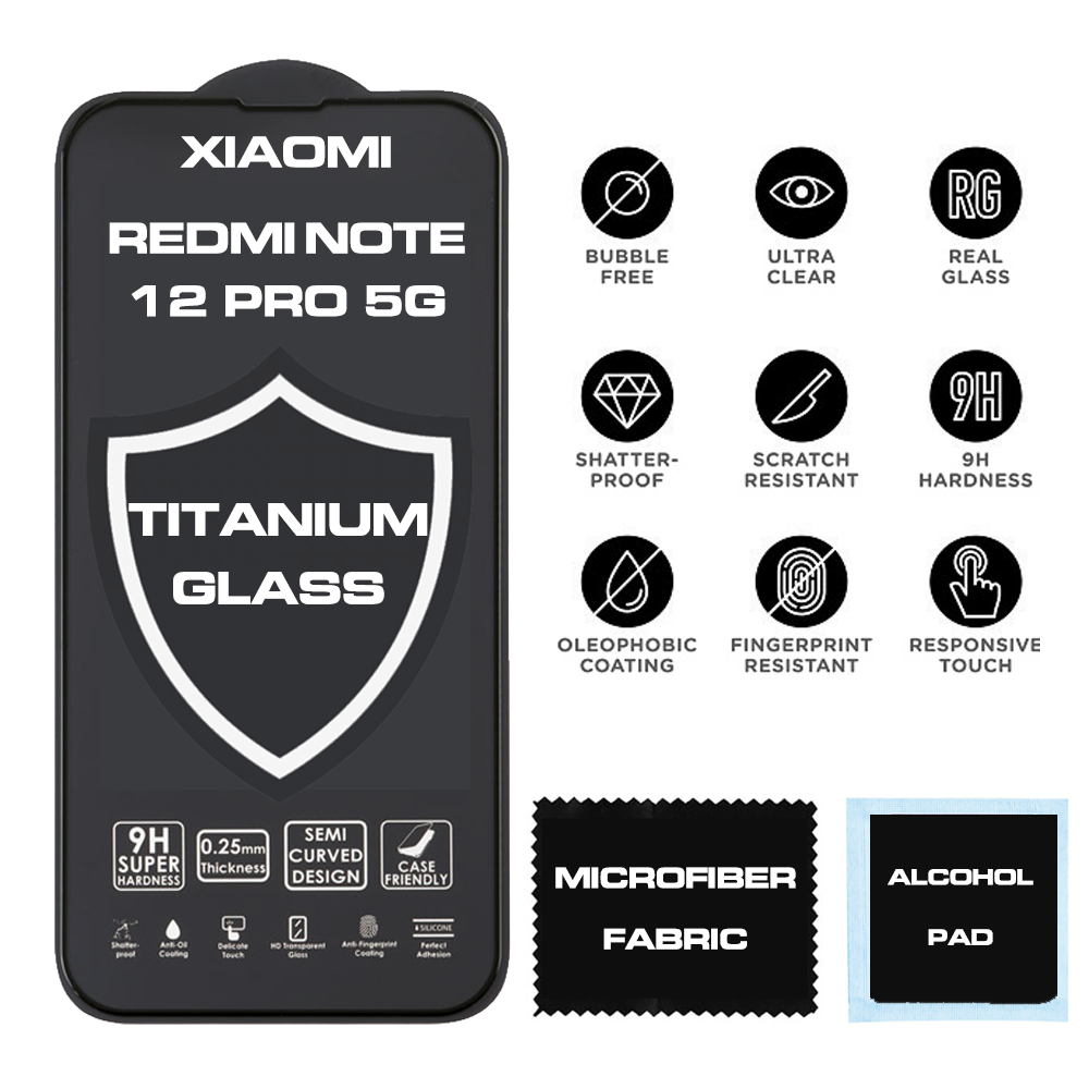 TITANIUM TEMPERED GLASS XIAOMI REDMI NOTE 12 PRO 5G 6.67" 9H 0.25mm FULL FACE FULL GLUE SEMI CURVED BLACK