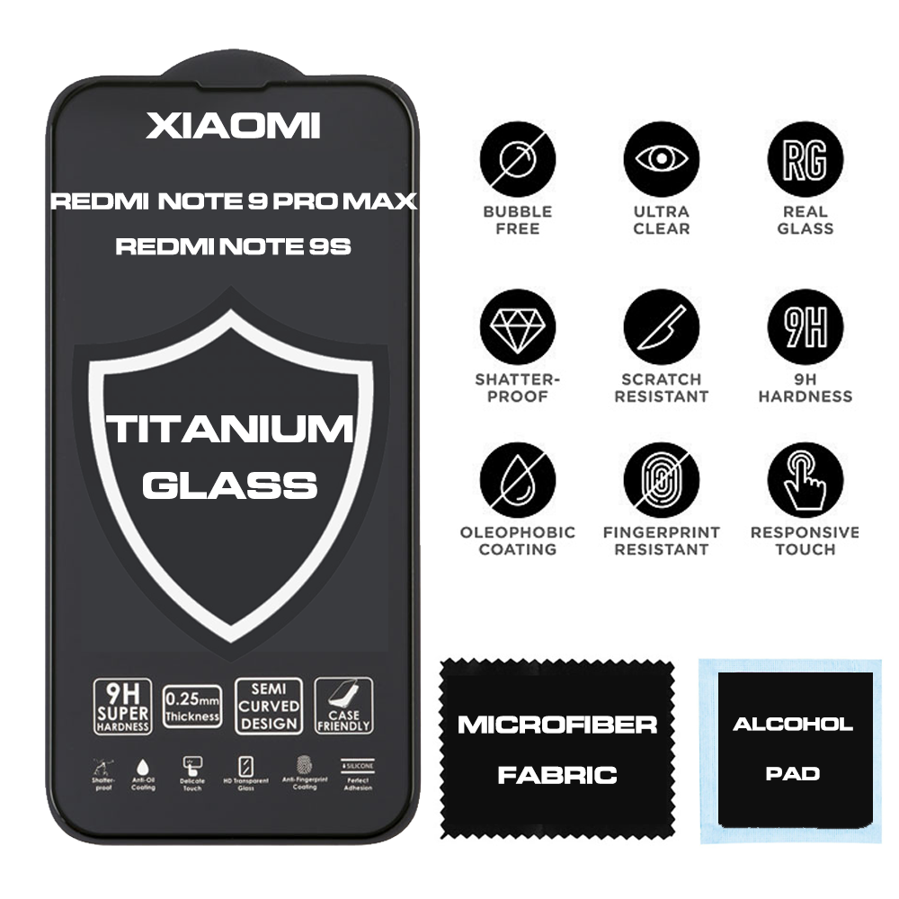 TITANIUM TEMPERED GLASS XIAOMI REDMI NOTE 9S / NOTE 9 PRO MAX 6.67" 9H 0.25mm FULL FACE FULL GLUE SEMI CURVED BLACK