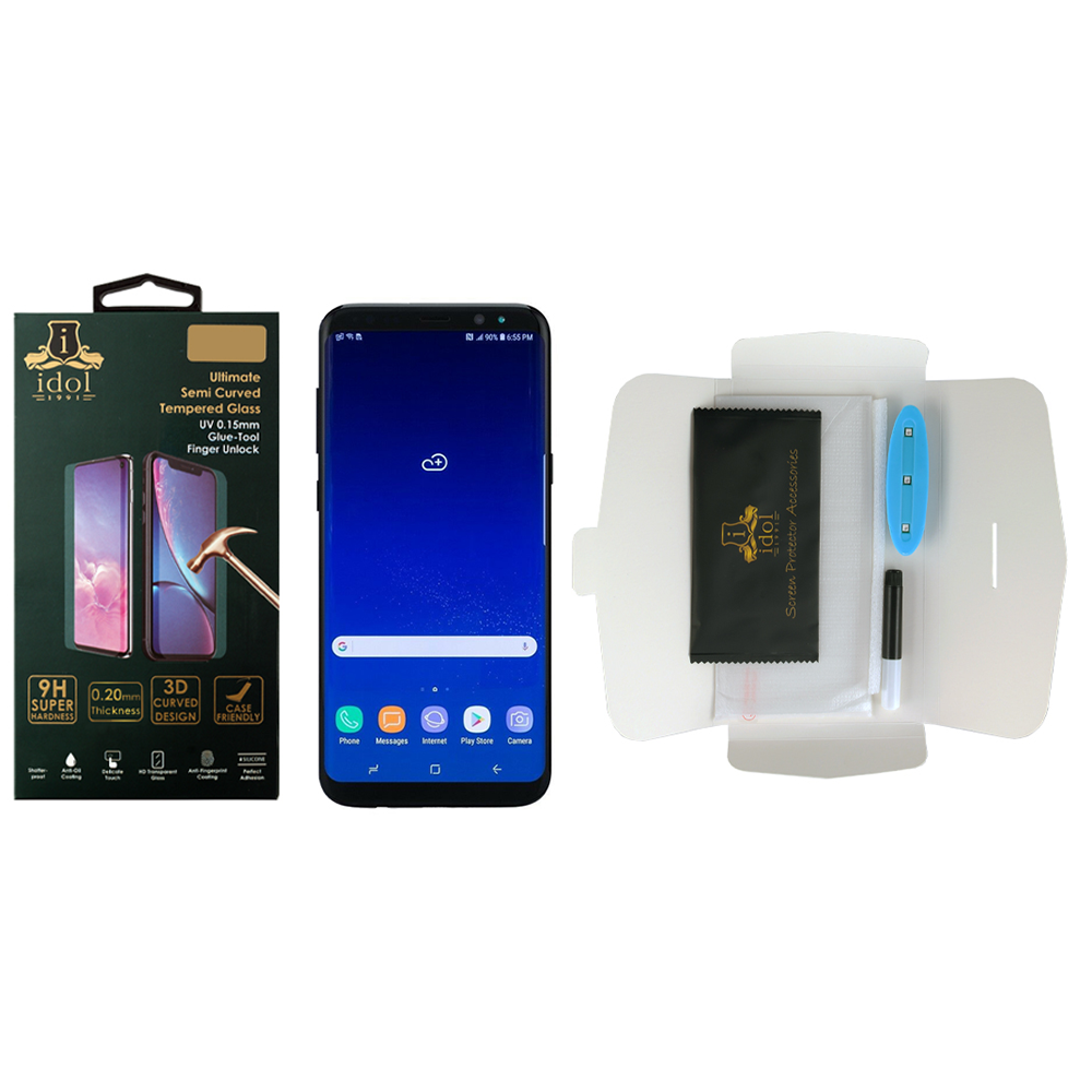 TEMPERED UV GLASS SAMSUNG S8+ PLUS G955 6.2" 9H 0.20mm 10D SEMI WITH GLUE-TOOL FINGER UNLOCK FULL COVER TRANSPARENT