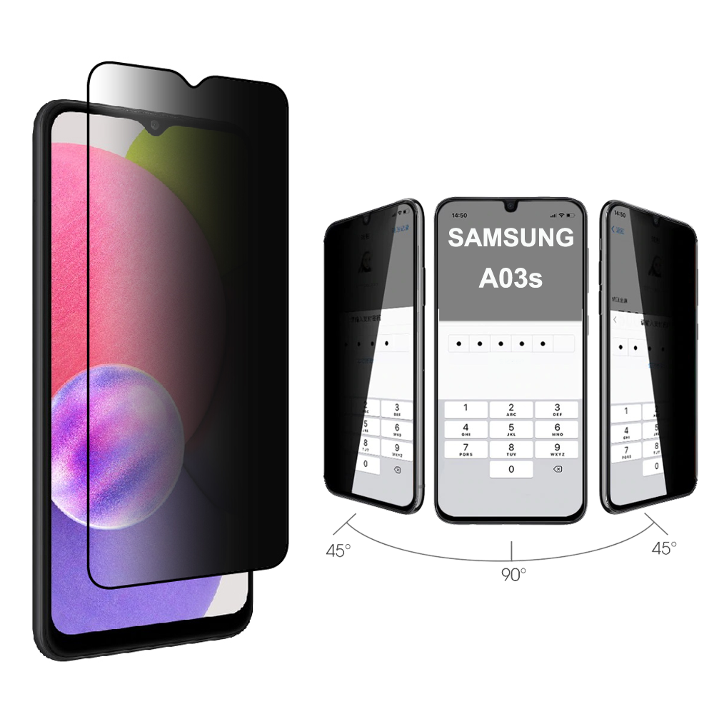 PREMIUM IDOL 1991 TEMPERED GLASS SAMSUNG A03s A037 6.5" 9H 0.30mm FULL FACE FULL GLUE PRIVACY ANTISPY GLASS BLACK