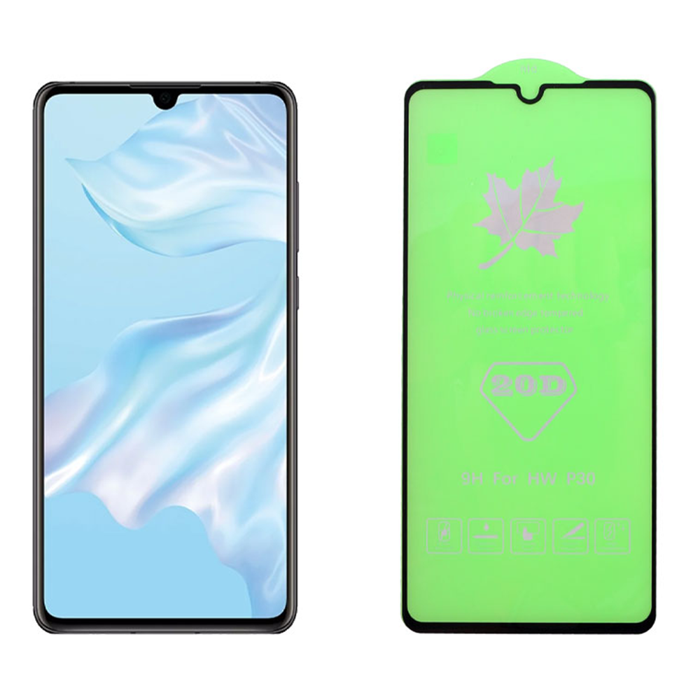 TEMPERED GLASS HUAWEI P30 6.1" 9H 0.30mm 20D FULL GLUE SEMI CURVED BLACK