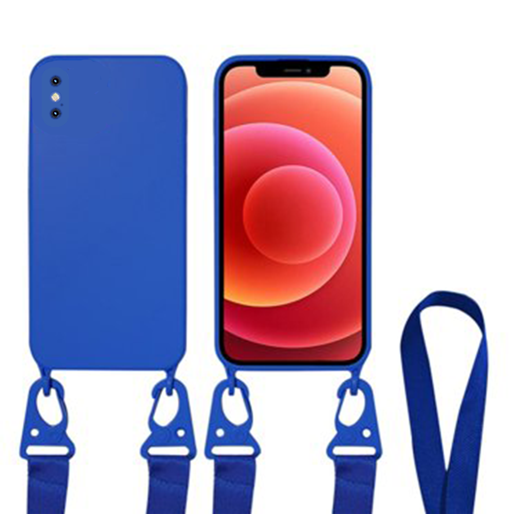 ΘΗΚΗ IPHONE XS / IPHONE X 5.8" CROSSBODY SILICONE ΜΕ STRAP ΚΑΙ CAMERA GUARD ΜΠΛΕ ΣΚΟΥΡΟ