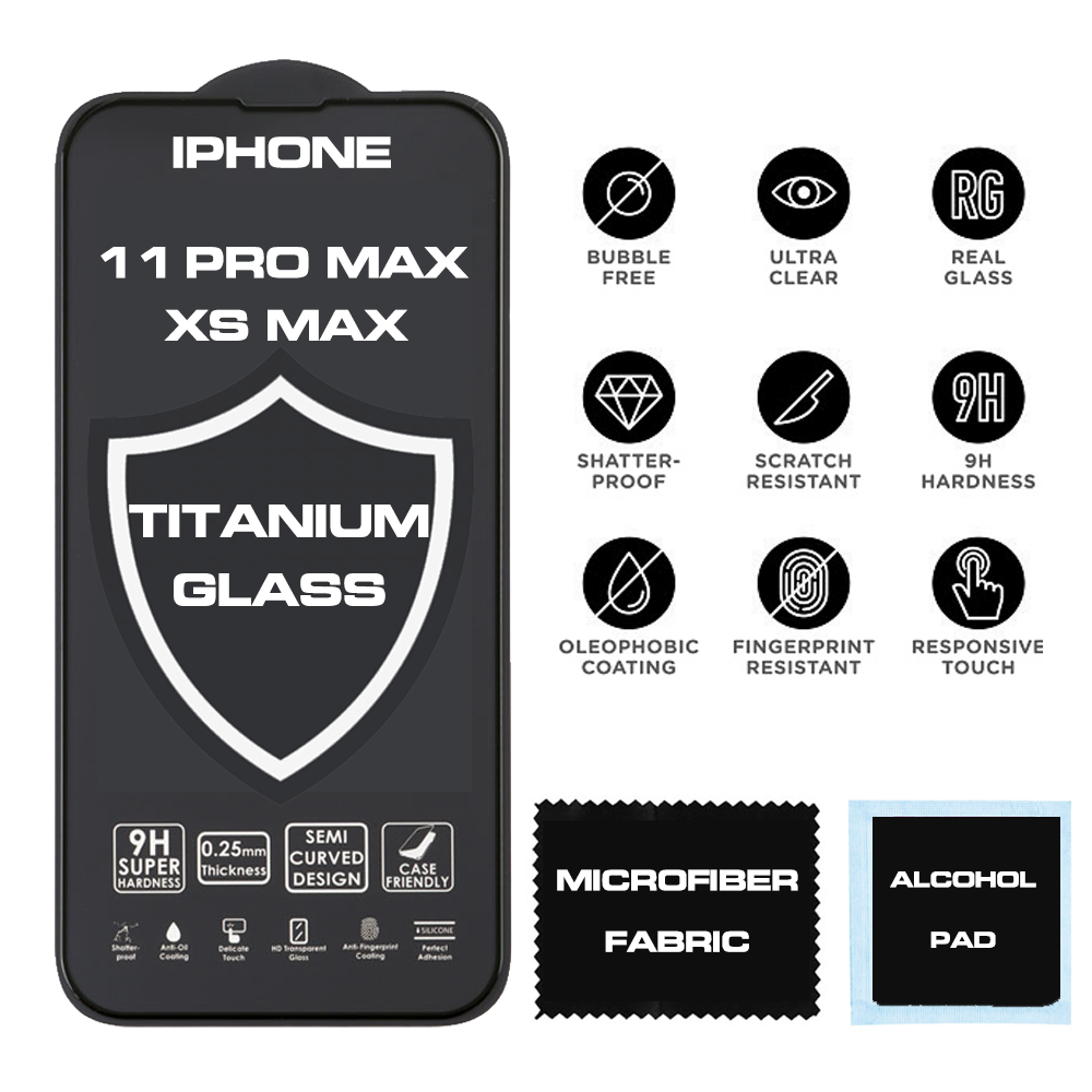 TITANIUM TEMPERED GLASS IPHONE 11 PRO MAX/XS MAX 6.5" 9H 0.25mm FULL FACE FULL GLUE SEMI CURVED BLACK