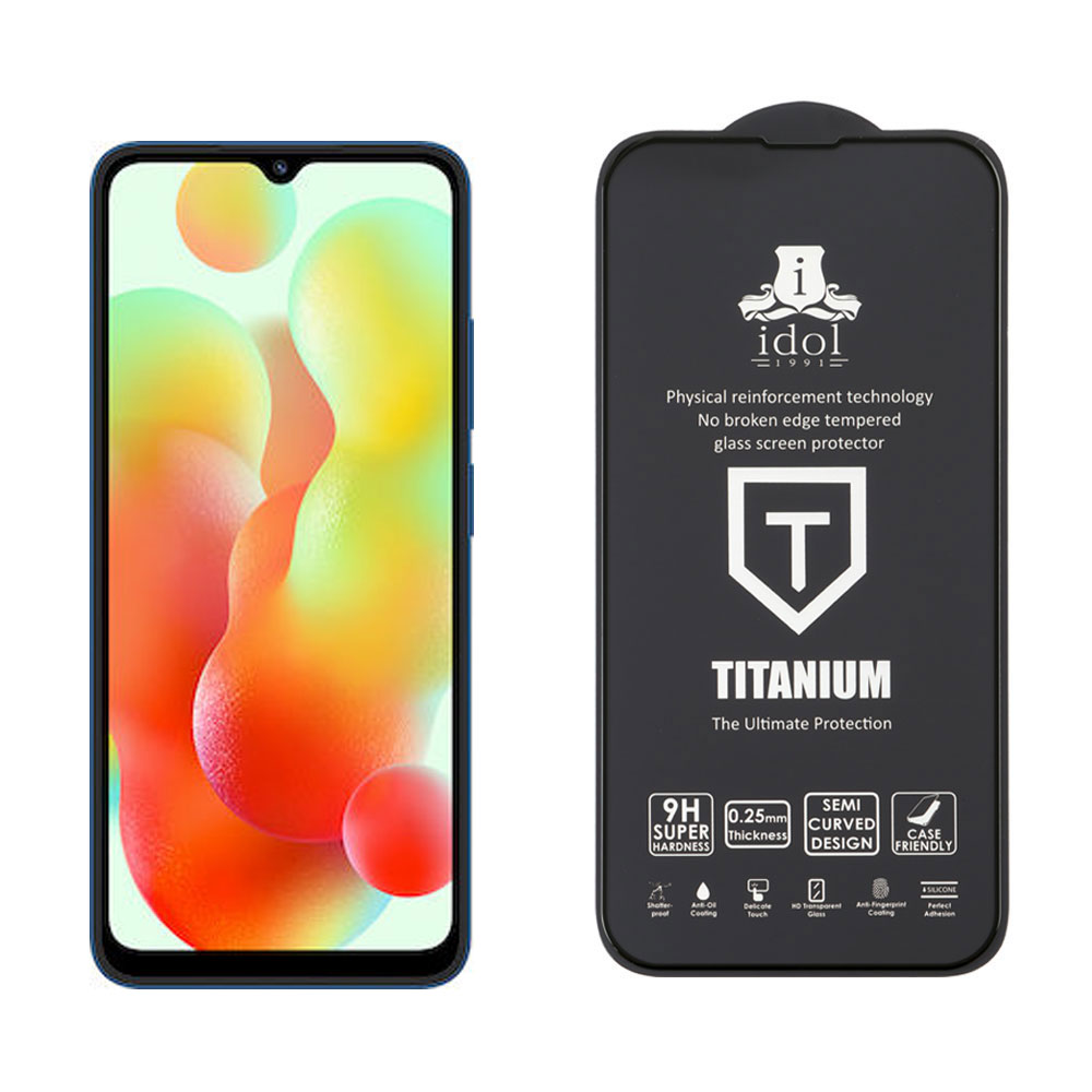 TEMPERED GLASS XIAOMI REDMI 12C 6.71" 9H 0.25mm TITANIUM SEMI CURVED FULL GLUE BLACK