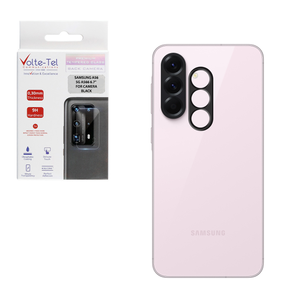 VOLTE-TEL TEMPERED GLASS SAMSUNG A56 5G A566 6.7" 9H 0.25mm 3D CURVED FOR CAMERA BLACK