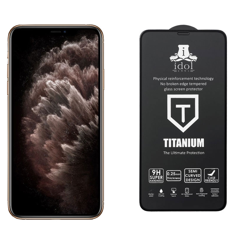 TEMPERED GLASS IPHONE 11 PRO MAX / IPHONE XS MAX 6.5" 9H 0.25mm TITANIUM SEMI CURVED FULL GLUE BLACK