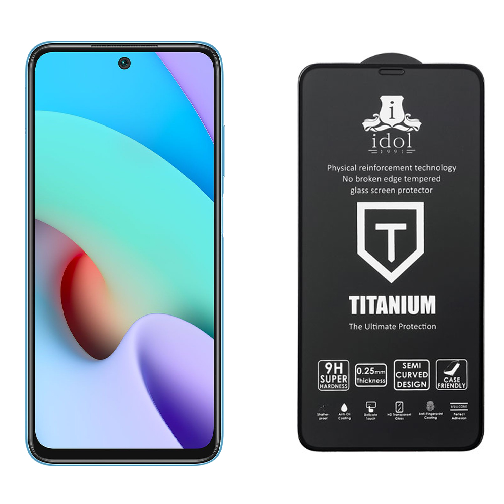 TEMPERED GLASS XIAOMI REDMI 10 / REDMI 10 2022 6.5" 9H 0.25mm TITANIUM SEMI CURVED FULL GLUE BLACK