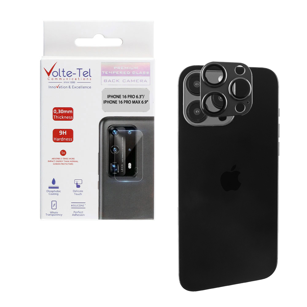 VOLTE-TEL CAMERA GLASS COVER IPHONE 16 PRO 6.3" / IPHONE 16 PRO MAX 6.9" 9H 0.30MM 3D AR ALUMINIUM-ELECTROPLATING FRAME BLACK
