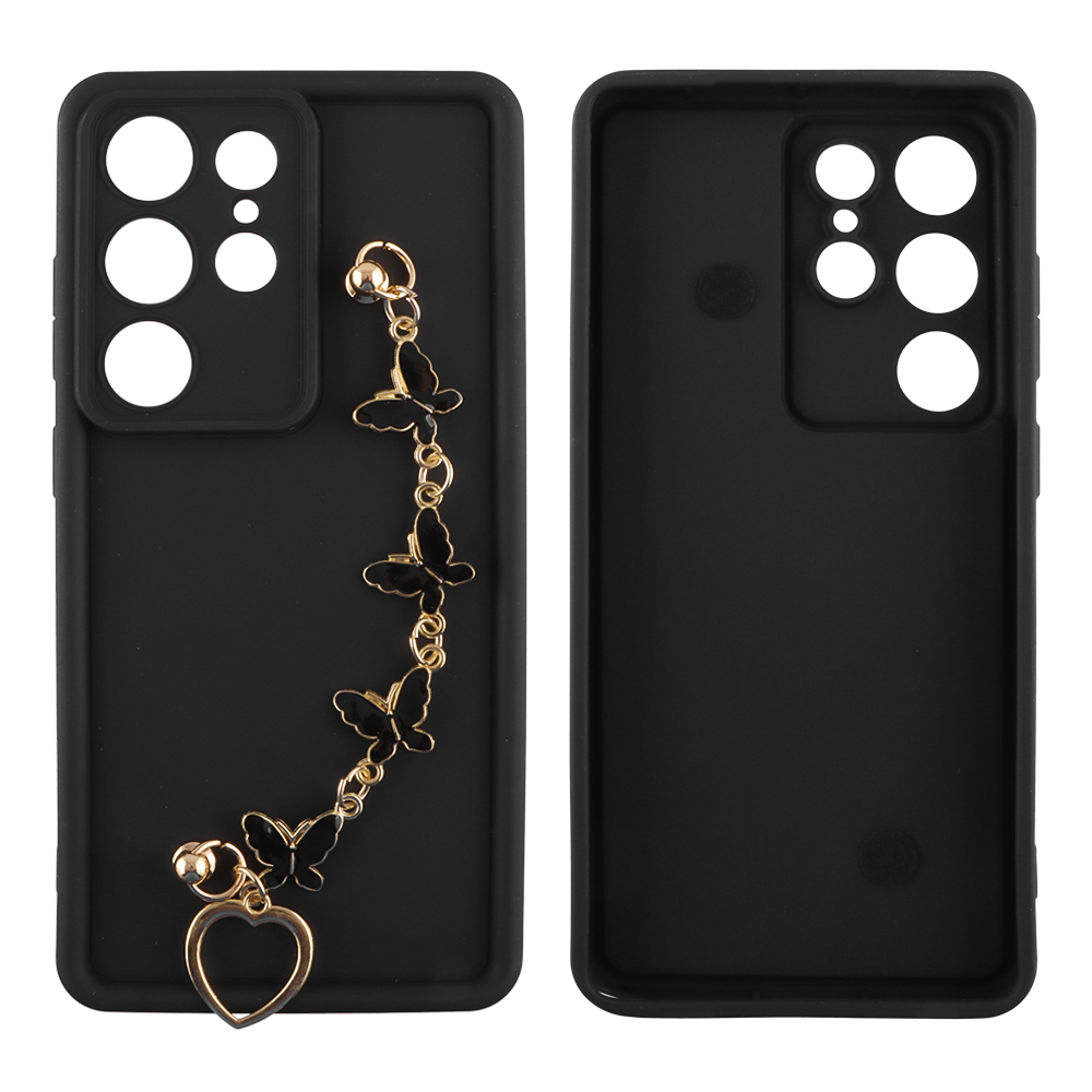 VOLTE-TEL ΘΗΚΗ SAMSUNG S25 ULTRA 5G S938 6.9" SILICON TPU WITH STRAP FULL CAMERA PROTECTION BLACK WITH BLACK BUTTERFLIES