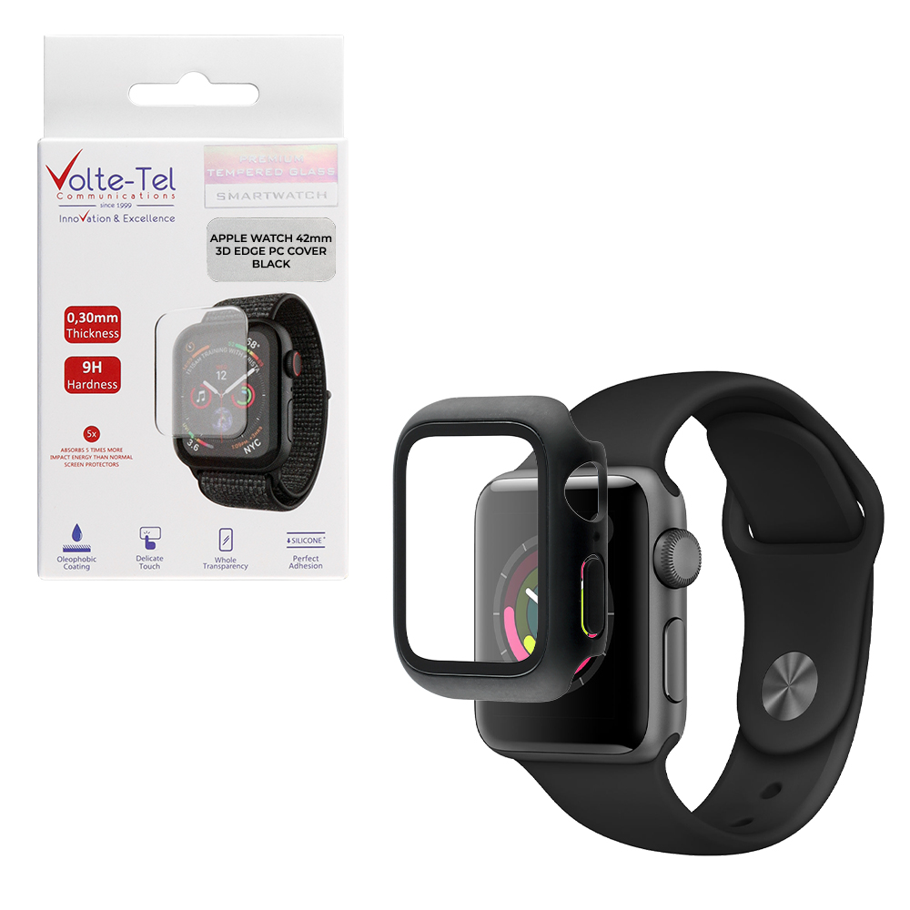 TEMPERED GLASS APPLE WATCH 42mm 1.65" 9H 0.30mm PC EDGE COVER WITH KEY 3D FULL GLUE FULL COVER BLACK