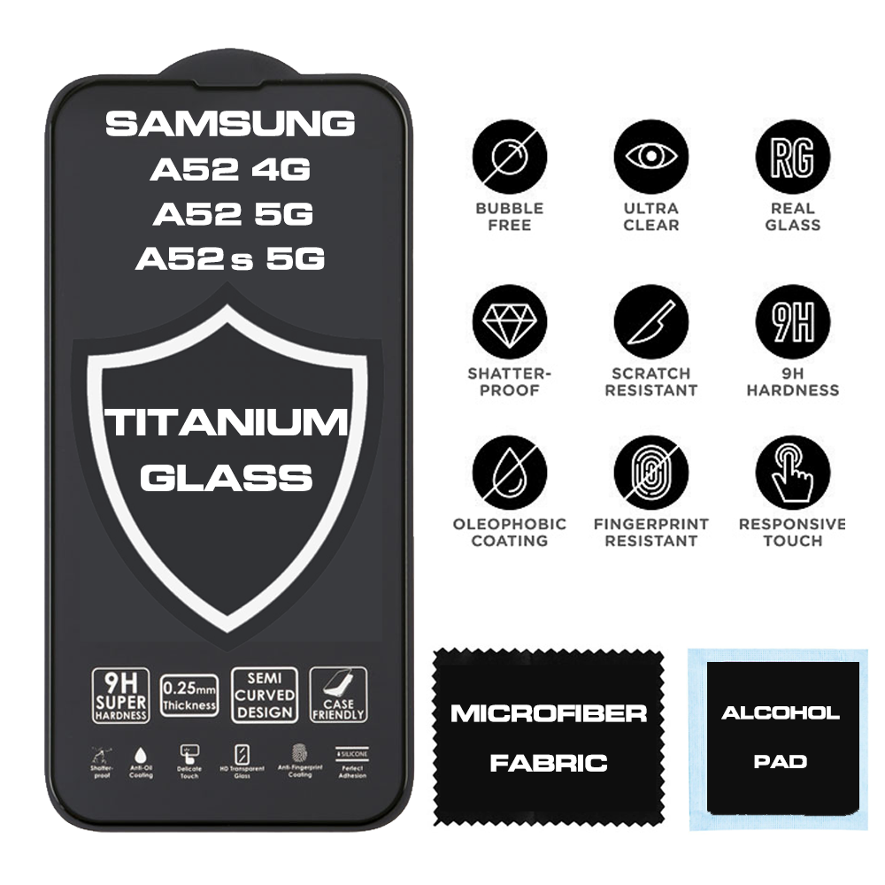 TITANIUM TEMPERED GLASS SAMSUNG A52 4G / A52 5G / A52S 5G 6.5" 9H 0.25mm FULL FACE FULL GLUE SEMI CURVED BLACK