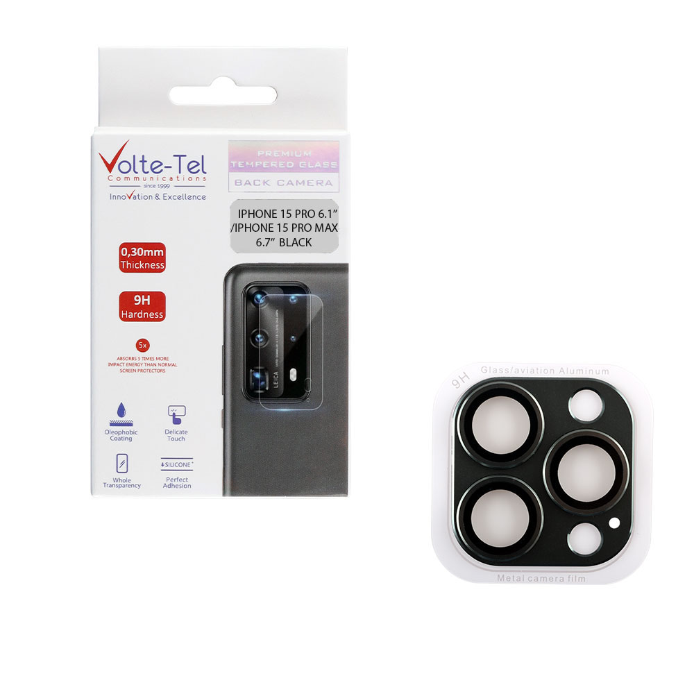 CAMERA GLASS COVER IPHONE 15 PRO 6.1" / IPHONE 15 PRO MAX 6.7" 9H 0.30MM 3D AR ALUMINIUM-ELECTROPLATING FRAME BLACK