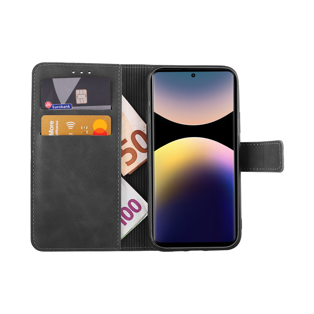 LIME ΘΗΚΗ XIAOMI REDMI NOTE 14 PRO 4G 6.67" ESSENTIAL MAGNET BOOK STAND CLIP GREY