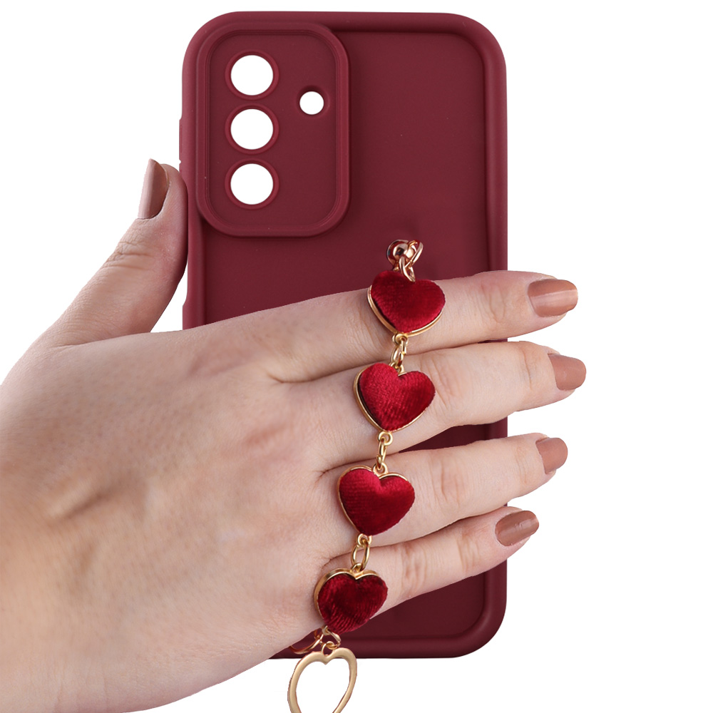 VOLTE-TEL ΘΗΚΗ SAMSUNG A17 4G A175 / A17 5G A176 6.74" SILICON TPU WITH STRAP FULL CAMERA PROTECTION BURGUNDY WITH RED HEARTS