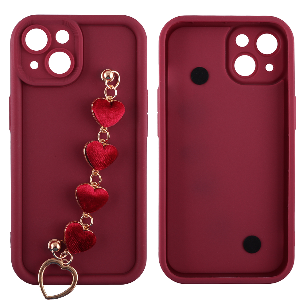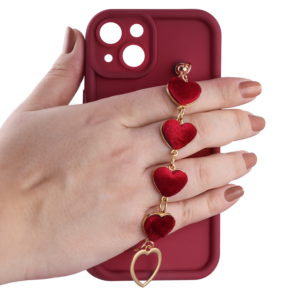 VOLTE-TEL ΘΗΚΗ IPHONE 14 6.1" SILICON TPU WITH STRAP FULL CAMERA PROTECTION BURGUNDY WITH RED HEARTS