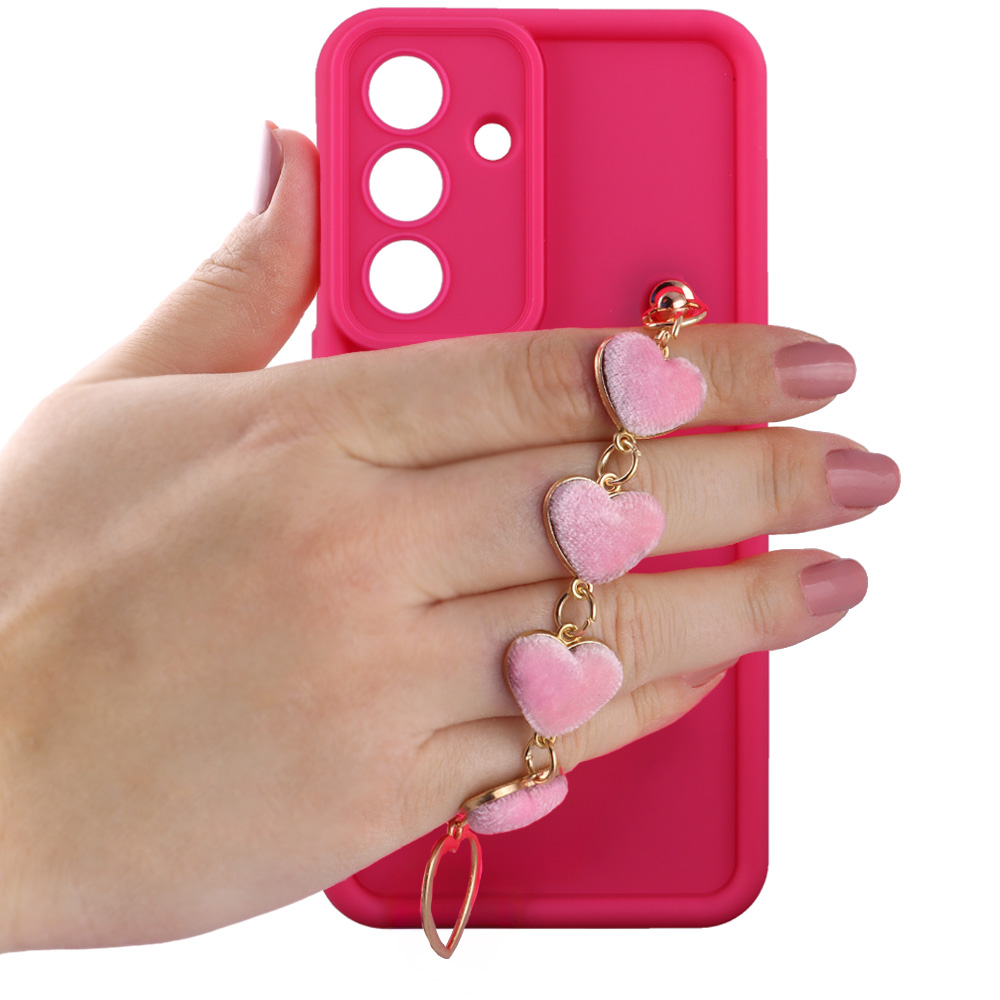 VOLTE-TEL ΘΗΚΗ SAMSUNG S26 5G 6.3" SILICON TPU WITH STRAP FULL CAMERA PROTECTION PINK WITH PINK HEARTS