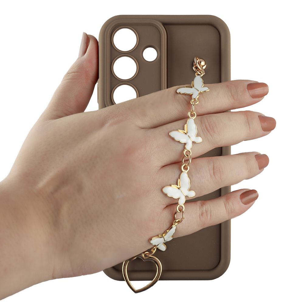 VOLTE-TEL ΘΗΚΗ SAMSUNG S25 5G S931 6.2" SILICON TPU WITH STRAP FULL CAMERA PROTECTION BROWN WITH WHITE BUTTERFLIES