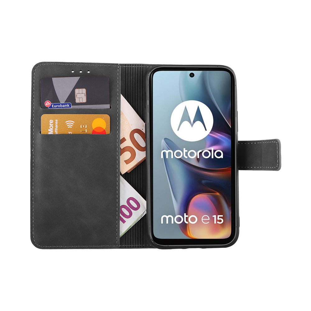 LIME ΘΗΚΗ MOTOROLA MOTO E15 4G 6.67" ESSENTIAL MAGNET BOOK STAND CLIP GREY