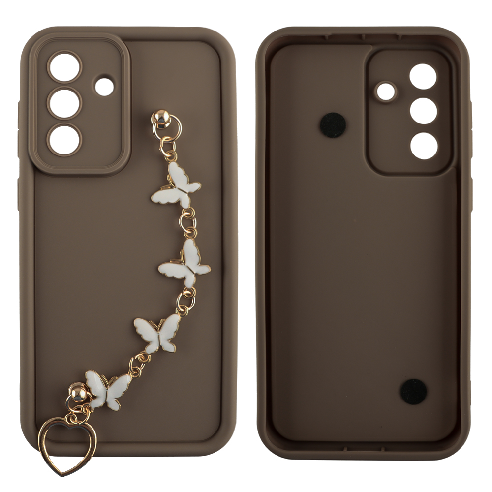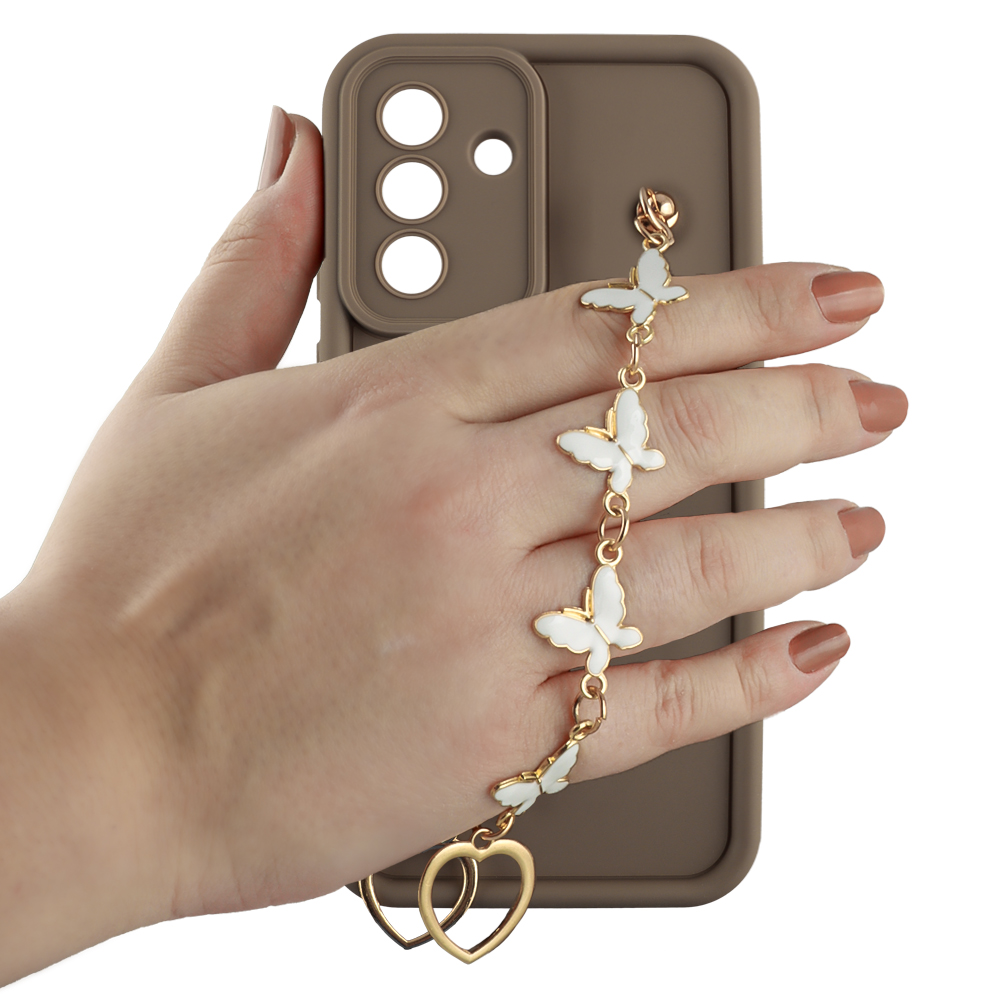 VOLTE-TEL ΘΗΚΗ SAMSUNG A36 5G A366 6.7" SILICON TPU WITH STRAP FULL CAMERA PROTECTION BROWN WITH WHITE BUTTERFLIES