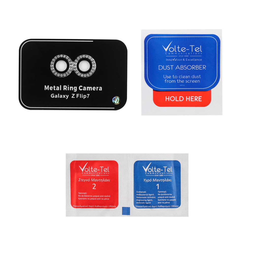 VOLTE-TEL CAMERA GLASS COVER SAMSUNG Z FLIP 7 5G F766 6.9" 9H 0.33MM EASY APPLICATION WITH STRASS SILVER