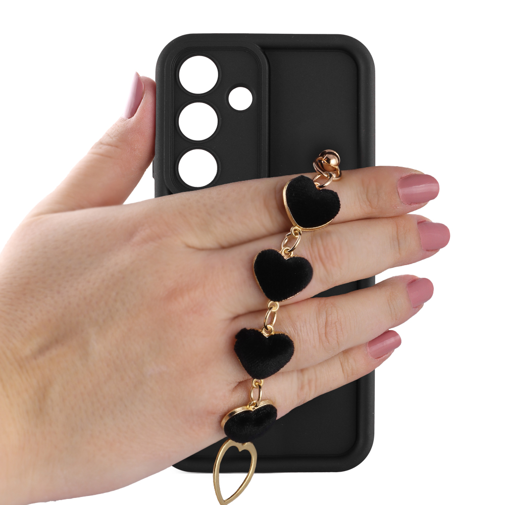 VOLTE-TEL ΘΗΚΗ SAMSUNG S25 5G S931 6.2" SILICON TPU WITH STRAP FULL CAMERA PROTECTION BLACK WITH BLACK HEARTS