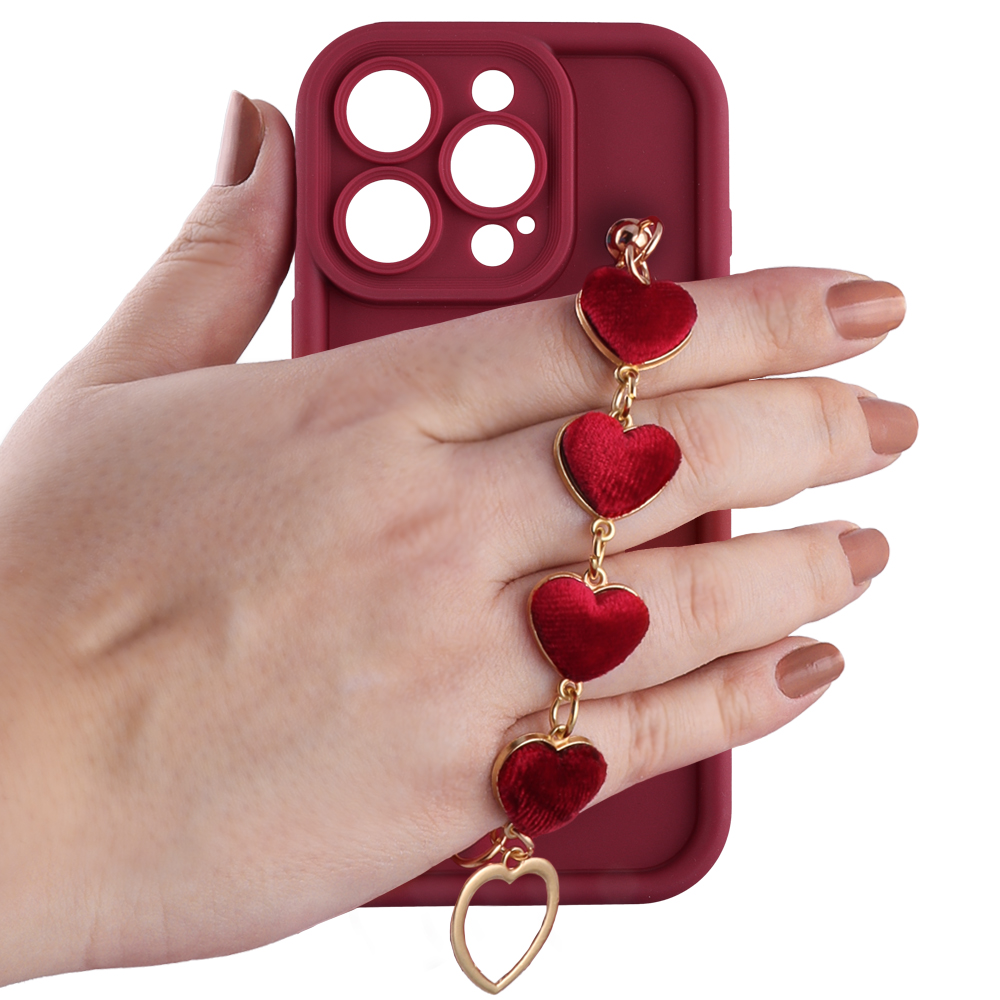 VOLTE-TEL ΘΗΚΗ IPHONE 16 PRO 6.3" SILICON TPU WITH STRAP FULL CAMERA PROTECTION BURGUNDY WITH RED HEARTS