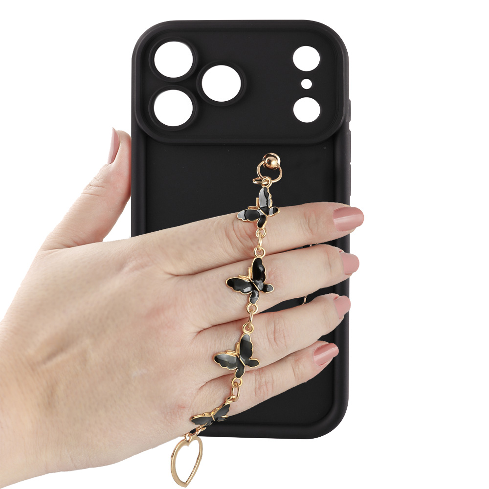 VOLTE-TEL ΘΗΚΗ IPHONE 17 PRO 6.3" SILICON TPU WITH STRAP FULL CAMERA PROTECTION BLACK WITH BLACK BUTTERFLIES