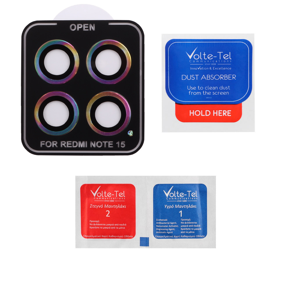 VOLTE-TEL CAMERA GLASS COVER XIAOMI REDMI NOTE 15 5G / POCO M8 5G 6.77" 9H 0.30MM EASY APPLICATION RAINBOW
