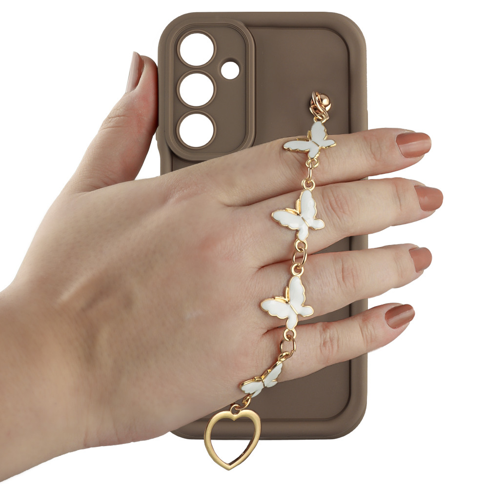 VOLTE-TEL ΘΗΚΗ SAMSUNG A16 4G A165 / A16 5G A166 6.7" SILICON TPU WITH STRAP FULL CAMERA PROTECTION BROWN WITH WHITE BUTTERFLIES