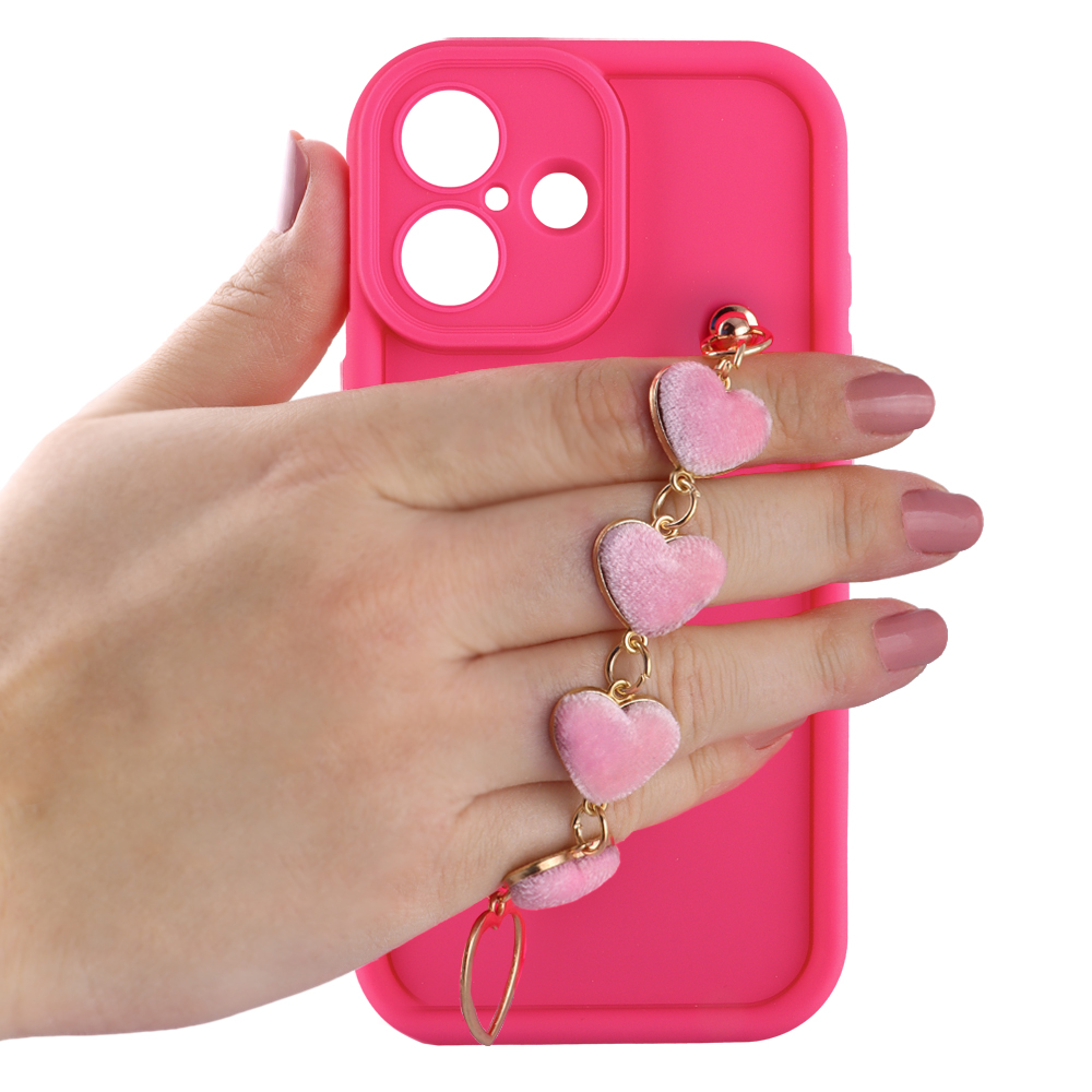 VOLTE-TEL ΘΗΚΗ IPHONE 16 6.1" SILICON TPU WITH STRAP FULL CAMERA PROTECTION PINK WITH PINK HEARTS