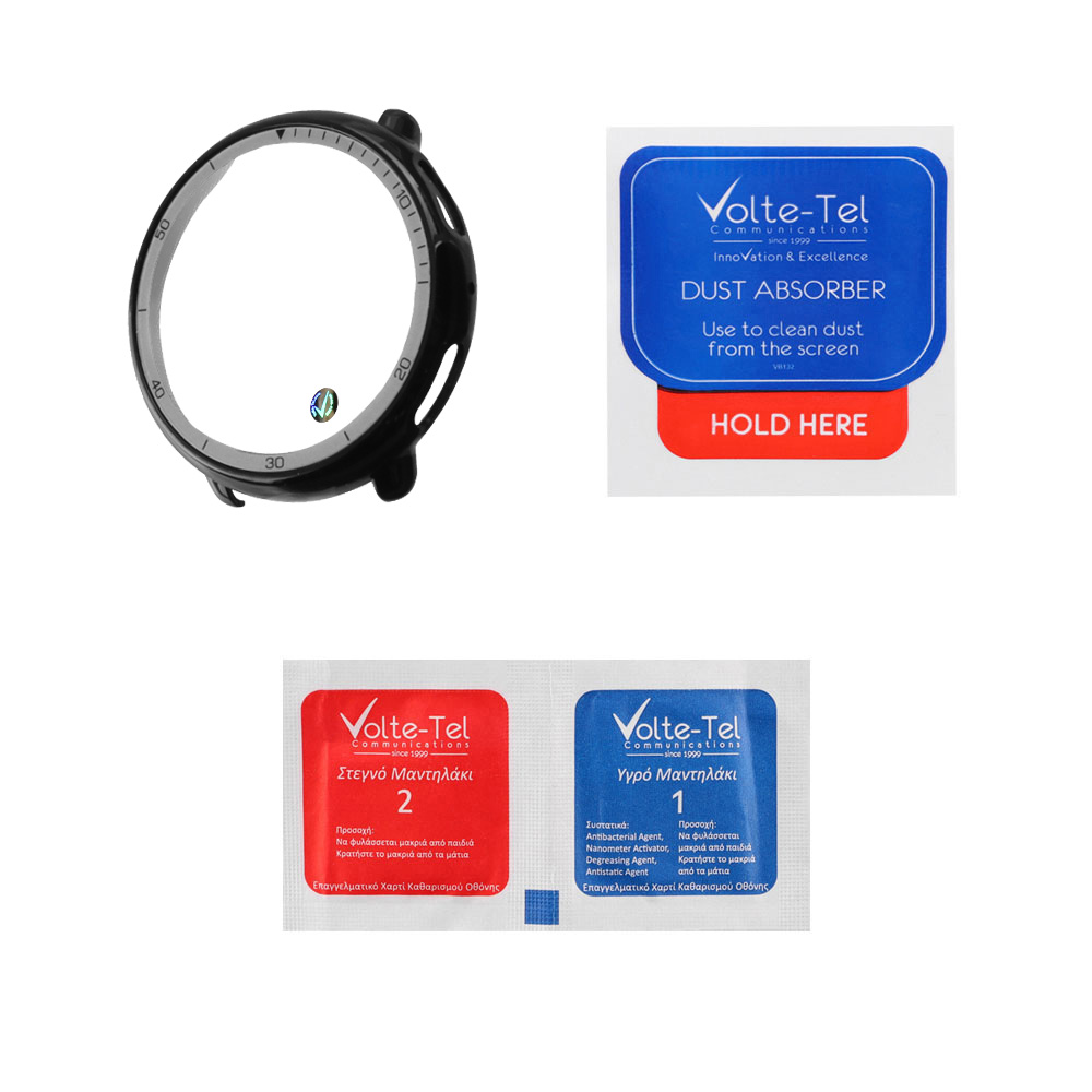 VOLTE-TEL TEMPERED GLASS AMAZFIT ACTIVE 2 1.32" 9H 0.30mm PC EDGE COVER WITH KEY 3D FULL GLUE FULL COVER BLACK