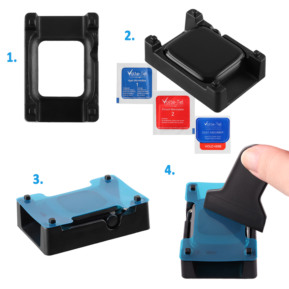 Ακόμα κι αν δεν έχετε εμπειρία στην τοποθέτηση προστατευτικών οθόνης, το εργαλείο καθιστά τη διαδικασία εύκολη και γρήγορη σε μόλις 4 βήματα: